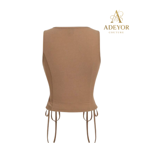 Elevate your wardrobe with this stylish sleeveless vest top featuring a flattering V-neckline, button-down front, and adjustable lace-up sides for the perfect fit. Designed for both comfort and elegance, this versatile piece pairs beautifully with jeans, skirts, or tailored trousers—making it a must-have for casual days, office chic, or evening outings. ✨ Features: • V-neck button-down front • Adjustable lace-up side details • Sleeveless design for all-day comfort • Premium quality fabric for durability • Perfect for casual and chic occasions • Available in Black, Brown, Lilac, Red, and White