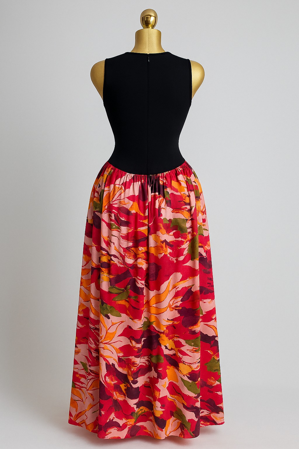 A flora and black dress well made to give fit comfort Available from size 6 to 14, on pre-order